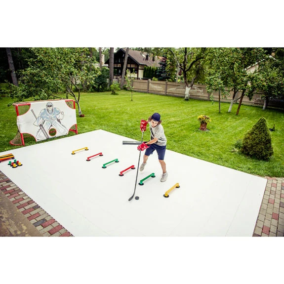 – Facilement transportable et peut-être utilisé n’importe ou (en le plaçant sur n’importe quelle surface plane) pour l’entraînement de hockey sur glace et du roller hockey.