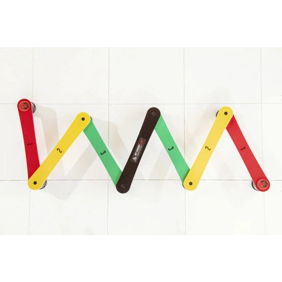 – Dimensions du produit : 7 sections de 38cm chacune (total 2,31 m) et de 8,5cm de haut reliées par des plots articulés.